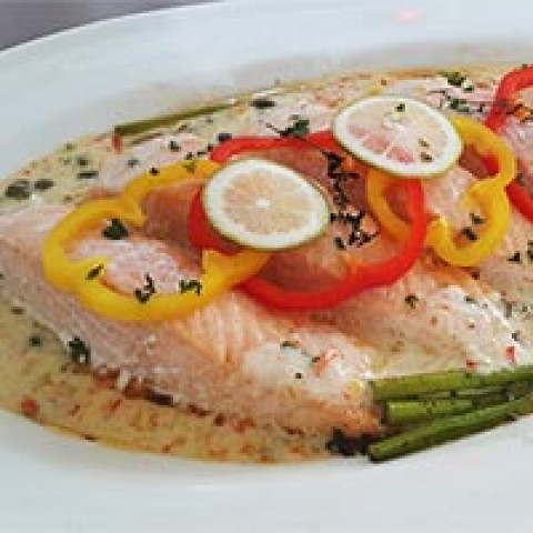 烤香料玉米鮭魚佐酸豆白酒奶油醬汁